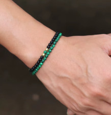 Lot de 2 bracelets de perle en pierre naturelle et breloque arbre de vie et feuille.