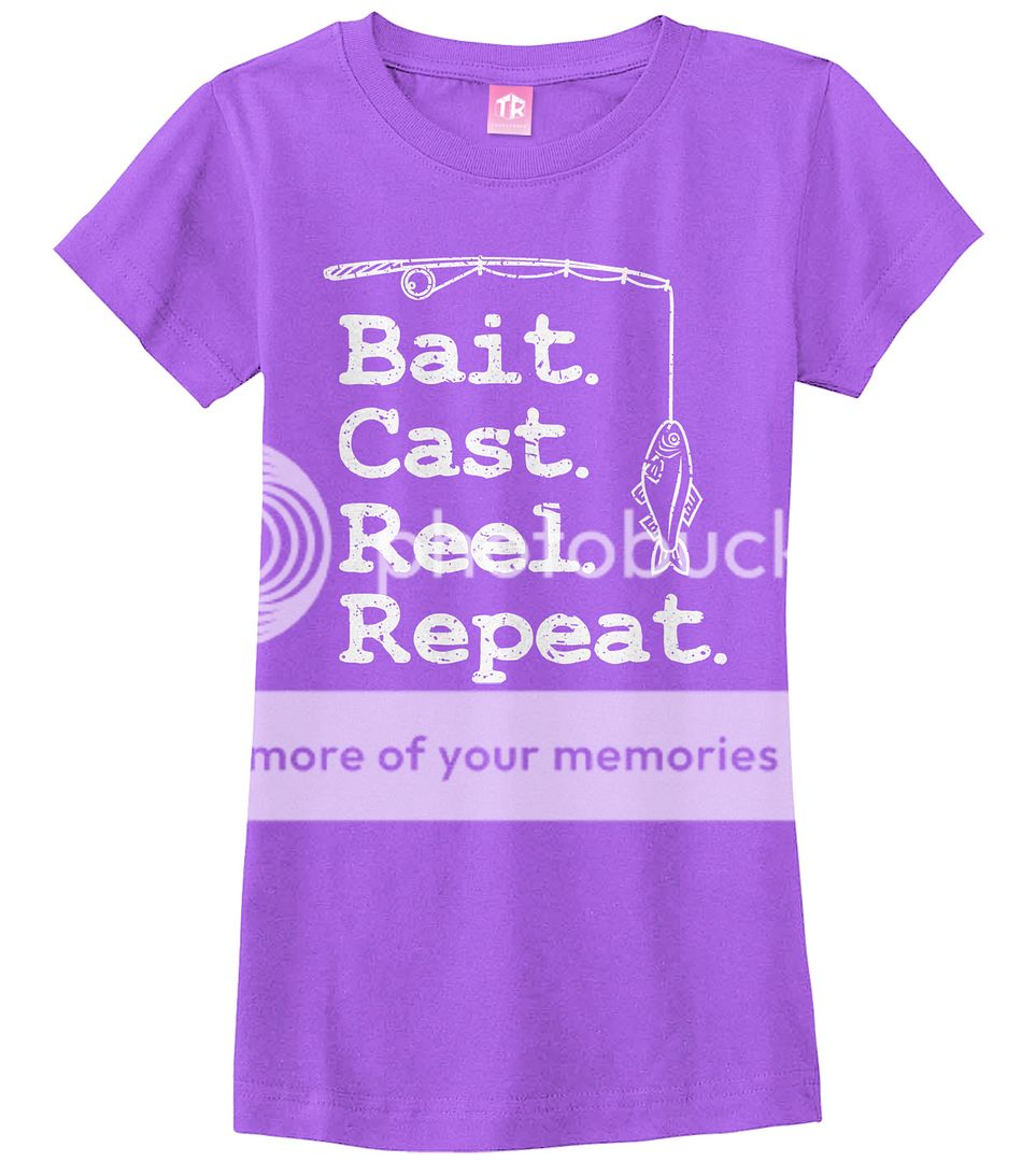 Bait Cast Reel Repeat Girls Fitted T-Shirt Fisherman Fishing Pole Gift