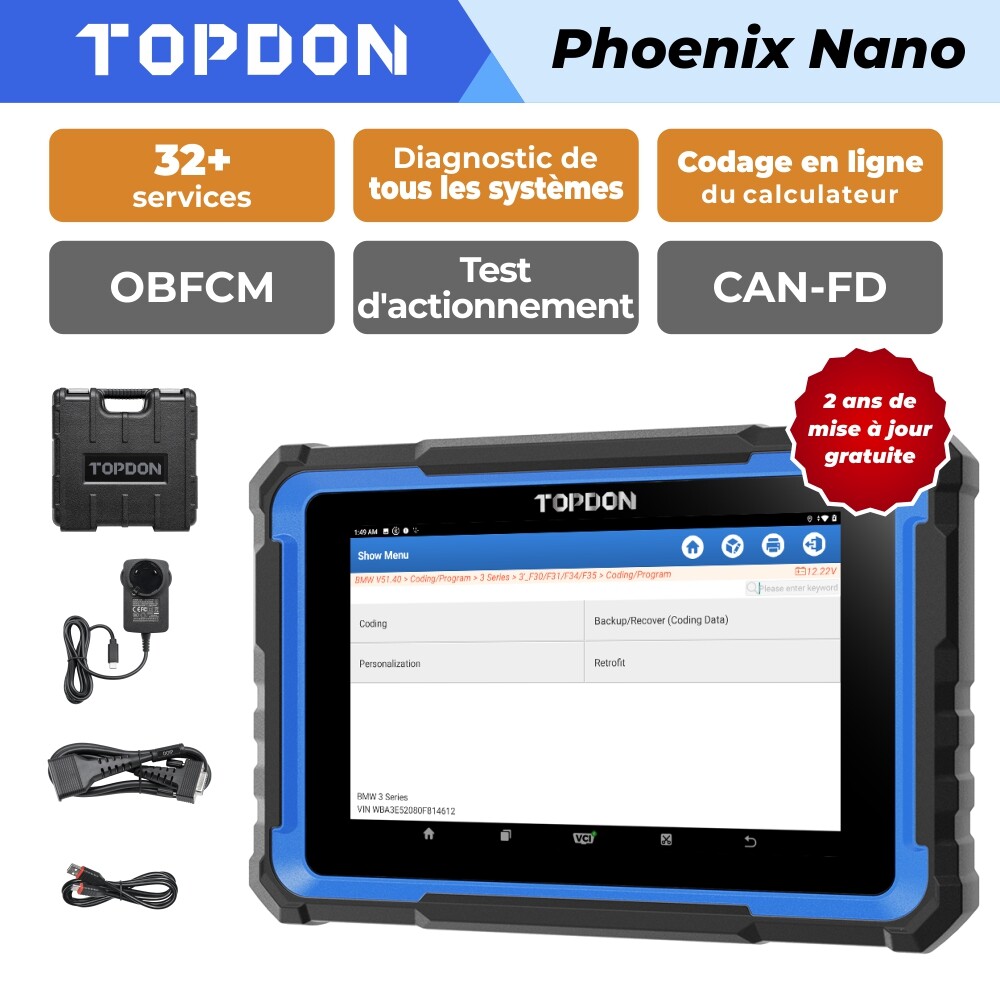 TOPDON Outil de diagnostic automobile Phoenix Nano-E Scanner de codage en ligne