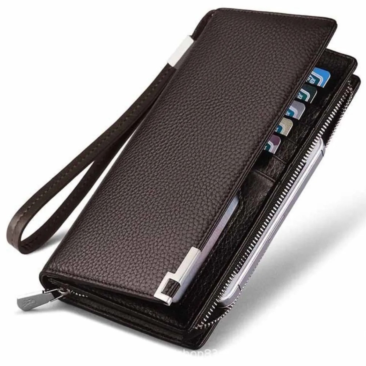 Portefeuille long en cuir PU avec fermeture éclair pour homme