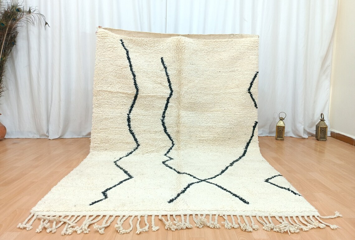 Beau tapis blanc, tapis marocain fait main, tapis berbère, tapis blanc et noi...