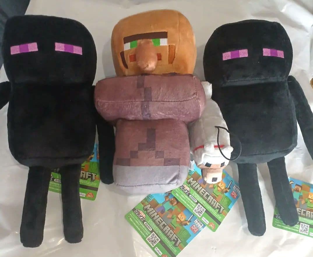 Lot de 4 peluches villageois loup gris Minecraft noir Enderman neuves