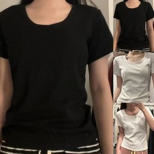 T-shirt manches courtes femme, asymétrique épaule dénudée, noir, pur désir, Style coréen, haut amincissant, épaule exposée, à la mode, été