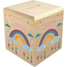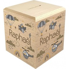 NONE Tirelire personnalisée en bois pour enfants, tirelire avec nom, cadeau de baptême pour enfants