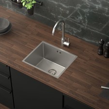 NONE Évier de cuisine en granit noir, 65 x 45 cm, installation réversible, évier encastré avec siphon et dispositif de trop-plein