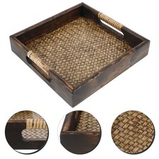 NONE Plateau alimentaire en bois plateau de service en bois massif avec poignée assiette rectangulaire en bois pour dîner pain fruits assiette alimentaire