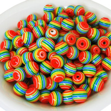 NONE Perles Rondes en Acrylique de 12mm 16mm 20mm, Intercalaires Colorées à Rayures, pour Bricolage, Bracelets à Breloques Faits à la Main, Boucles d'Oreilles, Bijoux de Direction