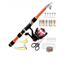 NONE Ensemble de canne à pêche, Kits complets avec canne à pêche télescopique et moulinet rotatif, appâts, crochets, ensemble de poteaux de voyage