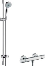 Thermostat de douche carré Hansgrohe Ecostat 15714000 Numéro d'article 15714000 chromé 2 consommateurs Cartouche thermostatique pour le contrôle de la température, vanne d'arrêt/de dérivation Verrouillage de sécurité à 40°C Limite de température réglable Débit : 26 l/min Contenu de la livraison : poignées, manchon, bloc fonctionnel, rosace, vanne d'arrêt/d'inversion Groupe de bruit : I Classe de débit : B, B veuillez commander l'iBox 01800180 séparément - non inclus