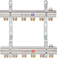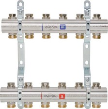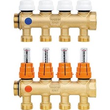 Distributeur de circuit de chauffage IMI Heimeier Dynacon Eclipse 9340-12.800 12 circuits de chauffage Application systèmes de chauffage au sol Fonction: Régulation individuelle de la température ambiante avec servomoteur ou tête thermostatique Contrôle de débit automatique éteindre Remplir drain Laver évent classe de pression : PM 6 Plage de débit : Le débit peut être réglé en continu dans la plage spécifiée : 30 - 300 l/h. Réglage d'usine 300 l/h. Pression différentielle (ΔpV) : Pression différentielle maxi : 60kPa ( Pression différentielle mini : 30 – 150 l/h = 17 kPa 150 – 300 l/h = 25 kPa Température: Température de fonctionnement maxi : 70°C Température minimale de fonctionnement : -5°C Matériaux: Distributeur: Acier inoxydable 1.4301 Raccords : laiton, nickelé. Partie supérieure du thermostat : Laiton Joints toriques : EPDM Disque de soupape : EPDM Ressort de compression : acier inoxydable Insert thermostatique : laiton, PPS. Broche : Broche en acier inoxydable avec double joint torique. Le joint torique extérieur peut être remplacé sous pression. Indicateur de débit: Plastiques résistants à la chaleur et acier inoxydable. Laiton. Joints EPDM. Dispositif de remplissage, vidange, rinçage et purge : Laiton, nickelé et plastique. Joints EPDM.