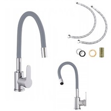 NONE Robinets de cuisine gris à 4 modes, Rotation extractible, cascade, tête de pulvérisation à jet noir, mélangeur d'évier, accessoire de robinet d'eau en nickel brossé