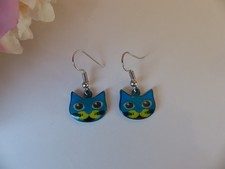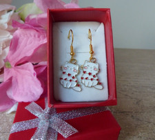 Boucles d'oreilles pendantes chat en céramique, chat faisant signe, Maneki Neko, cadeau d'anniversaire