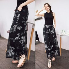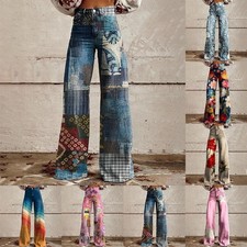 NONE Pantalon large à imprimé floral et nœud sur le devant, taille haute froncée style bohème pour les vacances, grandes tailles