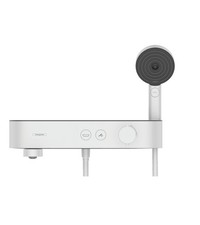 hansgrohe ShowerTablet thermostat de bain 24340000 En fonction du débit volumique et de la situation d'installation, réduction du débit d'environ 50 % et fonction d'arrêt intégrée utilisation simultanée de 2 consommateurs Allumer/éteindre 2 consommateurs à l'aide du bouton de sélection Contrôle de la température et du volume Pas 150 +/-12 mm CoolContact sur le thermostat empêche le boîtier de chauffer, ce qui rend les douches encore plus sûres Contrôle simple de l'eau : la quantité d'eau peut être réglée à l'aide de la commande rotative Verrouillage de sécurité à 40°C Limite de température réglable avec alimentation en eau isolée Disconnecteur anti-retour silencieux adapté pour chauffe-eau Etagère en plastique Type de raccordement G 1/2 Taille de raccordement DN 15 Piège à saletés intégré Le bec de la baignoire peut être facilement pivoté sous le thermostat lorsqu'il n'est pas utilisé Le thermostat est fourni avec une douchette à main et un bouton de bain