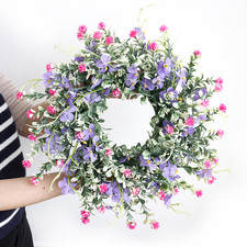 Couronne de fleurs sauvages artificielles faites à la main, 40cm, guirlande florale colorée pour fond de mur, fenêtre, porte d'entrée, mariage, printemps et été