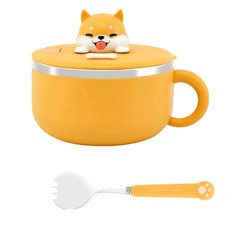 NONE Bol à nouilles Ramen en forme de canard Kawaii, avec couvercle, mignon, cuisine en acier inoxydable, salade instantanée de fruits, soupe de riz, bol Double couche, vaisselle