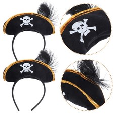 NONE Chapeau de Pirate noir et rouge, accessoires de Costume de capitaine de Pirate, casquette de crâne imprimée, décoration de fête de mascarade d'halloween, chapeau pour enfants