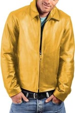 NONE Veste classique décontractée en cuir de vachette pour homme, manteau en peau de tête de batik tanné végétal, jaune et marron, grande taille, automne et hiver 2025