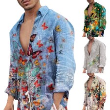 NONE Chemise en lin à manches longues pour hommes, chemise de poche décontractée d'affaires, style de bureau, qualité d'automne