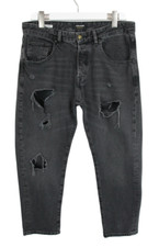 NONE Jean noir déchiré pour hommes, coupe cintrée, pantalon décontracté en détresse, Streetwear, mode, ceinture imprimée drapeau américain