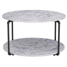 NONE Table basse ronde avec Texture marbre, 2 pièces, pour salon, canapé, Table basse et thé, meubles combinés 2 en 1, doré et blanc