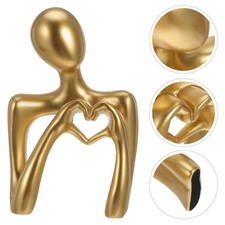 Aucun Sculpture en Résine Dorée en Forme de Cœur et Mains, Statue de Doigt d'Amour Abstrait Moderne pour Salon, Chambre à Coucher et Étagère