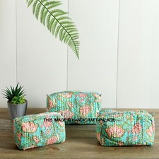 Trousse de maquillage matelassée Double couche en coton de grande capacité avec compartiments, fermeture à glissière florale pour accessoires de toilette, pinceaux