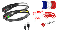 NONE Lampe frontale à capteur LED puissante, rechargeable par USB, torche frontale pour Camping, recherche, avec batterie intégrée, lanterne de pêche