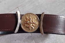 Le parfait accessoire pour finir parfaitement une tenue ! En cuir, notre ceinture à boucle ronde apportera une touche de fantaisie à votre look, quelqu'en soit le style. Taille• Largeur 3 cm environ• 5 longueurs au choix :• 34/36 : 75 cm• 38/40 : 85 cm• 42/44 : 95 cm• 46/48 : 105 cm• 50/52 : 115 cmComposition• CuirDescription• Boucle coloris doré• Ajustable