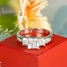NONE Bague de fiançailles en argent regardé 925 Moissanite naturelle pour femme, coupe radiante, plaqué or, cadeaux des travailleurs, 1-3ct