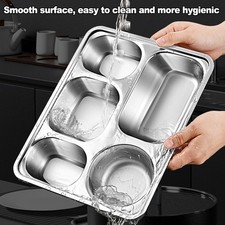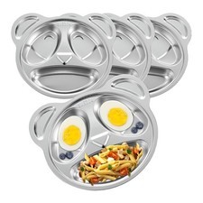 NONE Assiettes divisées en acier inoxydable, 2 pièces, assiettes à collation à 3 compartiments, assiettes à dîner divisées réutilisables pour enfants et adultes