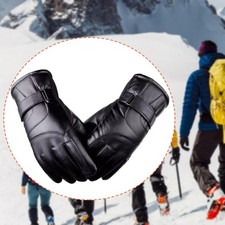 NONE Gants d'hiver en cuir de mouton véritable pour hommes, doublure en velours chaud, doigt complet, écran tactile, cyclisme en plein air, conduite, moto