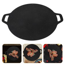 NONE Poêle ronde antiadhésive pour barbecue coréen, poêle à crêpes à Double manche en fonte, plaque ronde pour plaque chauffante pour barbecue avec poignée