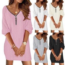 NONE Robe pull tricotée à col haut pour femme, décontractée, couleur unie, ample, manches longues, chaude, mi-longue, mode automne hiver