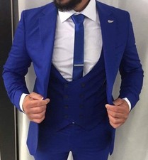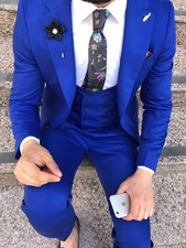 NONE Costumes d'affaires décontractés bleus à revers cranté pour hommes, costumes de mariage, Tuxedos Slim Fit Terno Masculino 2 pièces (veste + pantalon)