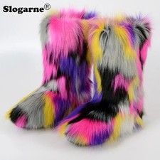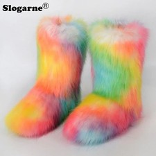 Bottes de neige en fourrure coordonnantes pour femmes, bottes de rinçage en coton, plate-forme en peluche, confortables, chaudes, à lacets, froid, vert, hiver, nouveau