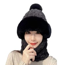 NONE Ensemble écharpe et chapeau en fausse fourrure pour femme, coupe-vent, épais et chaud, enveloppe de cou, couleur unie, Protection des oreilles, hiver