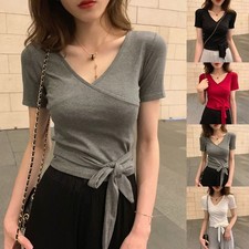 T-shirt col V, manches courtes - Blancheporte Kaki 42/44 Femme