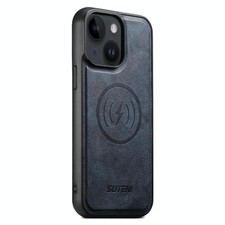 suteni Étui de téléphone en cuir PU avec support de carte de chargement sans fil, portefeuille à rabat magnétique pour iPhone 17 Pro Max 16 Plus 15 14 13 12