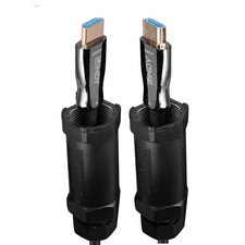 Câble fibre optique blindé HDMI 2.1 AOC (mâle – mâle), Rétrocompatibilité (HMDI 2.0/1.4), Prend en charge jusqu’à 8 K à 60 Hz, Broches en or plaqué, Aucune source d’alimentation externe requise, Longueurs disponibles: 15, 30, 50 et 100 m, Le câble fibre blindé DAP HDMI 2.1 AOC 8 K est un câble robuste et actif composé d’une gaine blindée qui vous permet de transmettre des signaux HDMI sur de longues distances sans latence ou perte de signal. Il élimine également les bruits de ligne EMI/RFI qui peuvent interférer avec votre signal AV et nuire à la performance de votre équipement connecté. Il prend en charge une résolution étonnante allant jusqu’à 8 K à 60 Hz et permet de transférer des signaux HDR avec un contraste riche et une meilleure précision des couleurs. Le câble fibre blindé HDMI 2.1 AOC 8 K est disponible en différentes longueurs.Remarque: les câbles HDMI DAP AOC possèdent des connecteurs d'émission et de réception dédiés et fonctionnent dans une seule direction.Données techniques: Résolution Maximale Entrée: 8K / 60Hz, Impédance: 0 Ω, Connecteur Data in: HDMI, Connecteur Data out: HDMI, Longueur Câble: 15 m, Type Câble: Armored Hybrid Fibre Optic, Contacts: 19, Diamètre d'Isolement Extérieur: 5.6 mm, Poids: 1.1 kg, Classement IP: IP20 (indoor use only), Couleur: Black, Type de Contact: Gold plated, Conducteurs: 4
