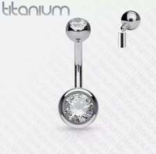NONE Anneaux de nombril en titane G23 14G, zircon, très poli, clous de sourcil filetés, ASTM F136, pour le corps, 1/10 pièces, vente en gros