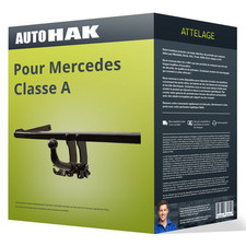 Auto-Hak propose aujourd'hui une gamme complète d'attelages pour plus de 500 modèles de véhicules. Avec plus de 30 ans d'expérience, la marque Auto-Hak, de par la conception et la qualité des produits, sera à la hauteur de vos attentes. Facile à monter grâce aux notices de montage fournies (partie mécanique et partie électrique). Caractéristiques : Indications : Mercedes Classe A (W168) - sauf modèles A210 Evolution Date de fabrication : 01/98-09/04 Type de rotule : Rotule horizontale démontable sans outil Masse remorquable : 1000Kg Masse statique : 50Kg Dépose du pare-chocs : Oui Découpe du pare-chocs : Découpe non visible (sous le pare-chocs) Poids de l'attelage : 14,94Kg Caractéristiques du faisceau : Type : Faisceau universel 7 broches Passage à la valise : Non Gestion des radars de recul : Non, désactivation manuelle via interrupteur au tableau de bord (si le véhicule en est pourvu) Longueur des fils : 1,85m (faisceau scindé à 70cm pour les feux gauche et droit)