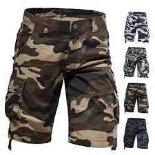 Short Cargo d'été pour hommes, taille élastique, poches à cordon de serrage, tactique décontracté, camouflage solide, imprimé militaire, pantalon court en tissu ajusté