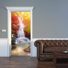 Papier Peint Auto-Adhésif 3D en Vinyle pour Portes en Bois, Autocollant Mural Rétro pour Salon, Couloir, Décalcomanie pour la Maison